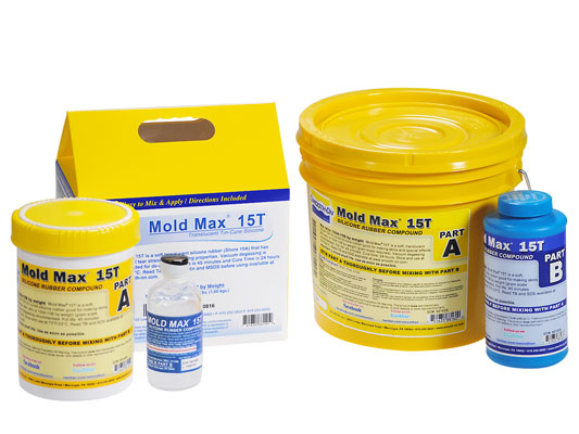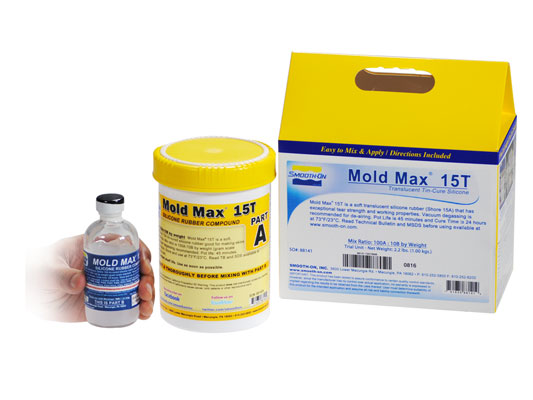 Mold Max™ 15T silicone is a water white translucent tin cured silicone rubber compound that has exceptional tear strength and working properties. It features Smooth-On’s “Libra™” catalyst for long library life. Mixed 100A:10B by weight, vacuum degassing is recommended for de-airing. Rubber cures overnight at room temperature. Mold Max™ ‘T’ silicones can be thickened with Thi-Vex™ thickener for brush-on application and effects.