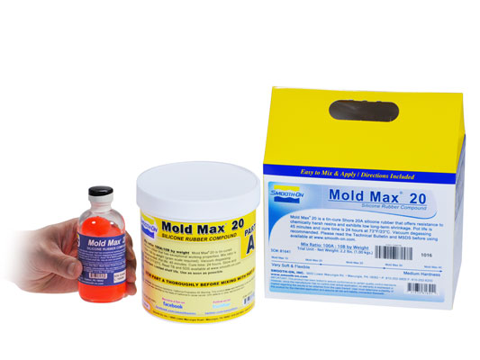 Mold Max™ Silicones are tin-cured silicone rubber compounds that have exceptional working properties and library life. Mold Max™ Silicones feature Smooth-On’s exclusive “Libra™” catalyst for long library life. Mold Max™ silicones can be pigmented with Silc Pig™ silicone colorants. Pot life for the pourable silicones is 45 minutes and they cure overnight at room temperature.