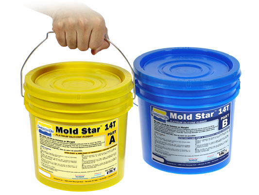 Mold Star™ 14T is an easy to use Shore 14A translucent platinum silicone that is mixed 1A:1B by volume (no weighing scale necessary). It features a relatively low viscosity and vacuum degassing is not required for most applications. Pot life is 3 minutes and cure time is 9 minutes at room temperature.