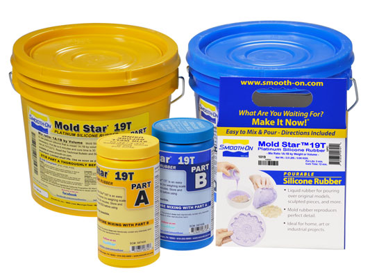 Mold Star™ 19T is an easy to use Shore 19A translucent platinum silicone that is mixed 1A:1B by volume (no weighing scale necessary). It features a relatively low viscosity and vacuum degassing is not required for most applications. Pot life is 3 minutes and cure time is 12 minutes at room temperature.