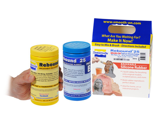 Rebound™ 25 is an easy-to-use platinum-cure silicone rubber which self-thickens for making brush-on molds of almost any model. Mixed 1A:1B by volume (no scale necessary), Rebound™ rubber can be applied with a brush or spatula to vertical surfaces without sagging and will cure with negligible shrinkage to a flexible rubber.
